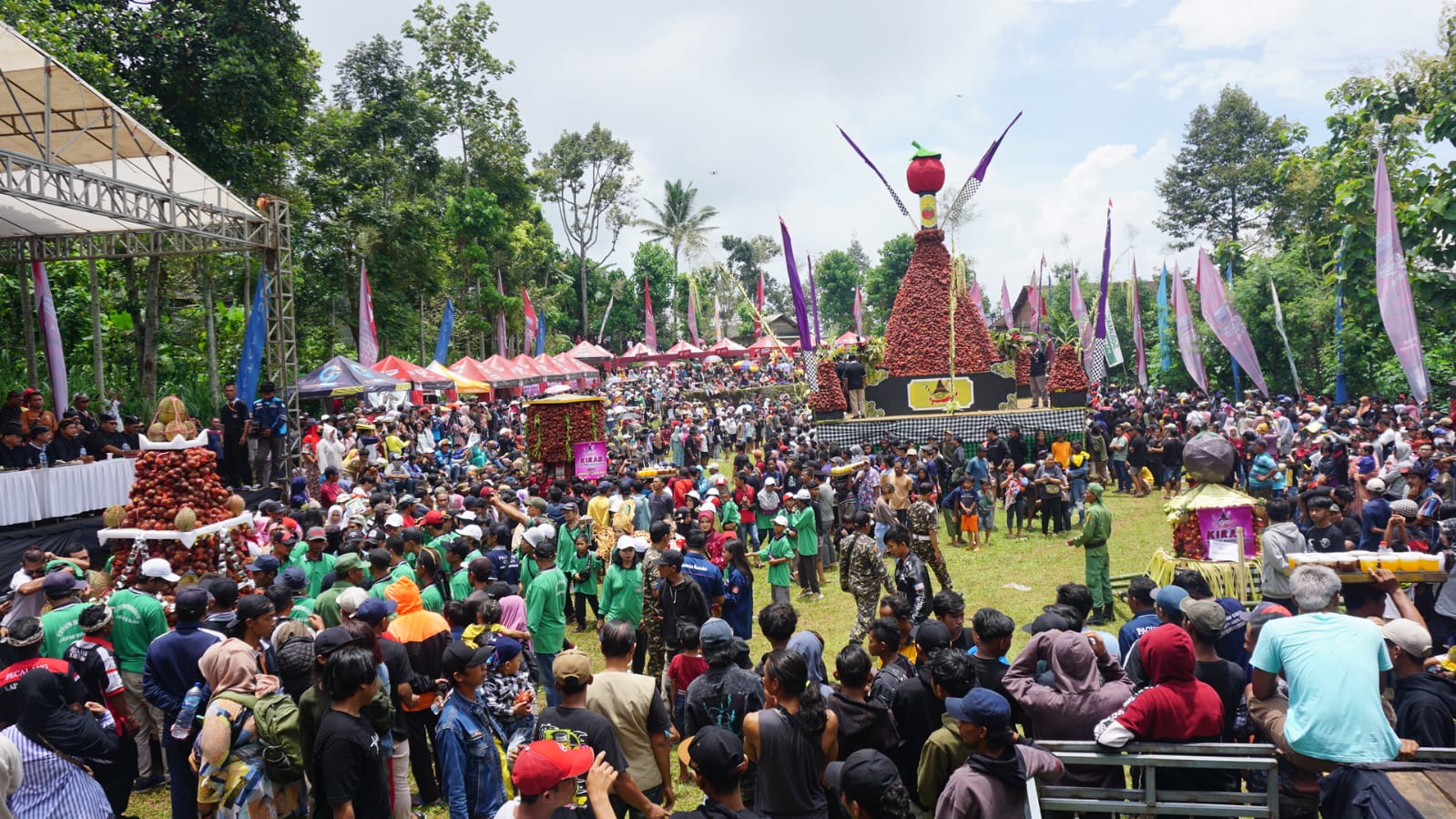 Dan yang paling ditunggu-tunggu adalah gunungan tumpeng buah manggis sebanyak 2024 kg yang siap dibagikan secara gratis kepada masyarakat atau pengunjung disekitar lokasi kegiatan.