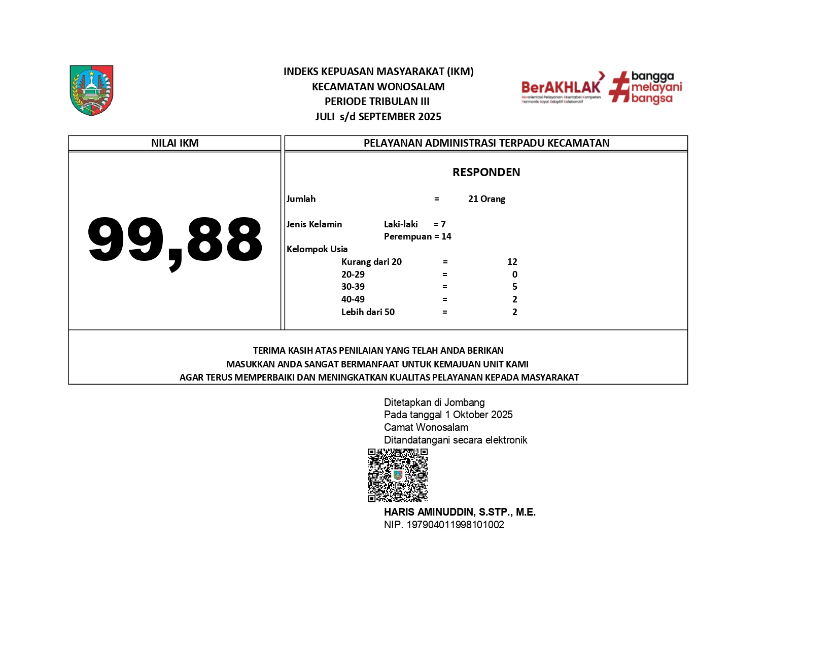 INDEKS KEPUASAN MASYARAKAT (IKM) PERIODE JULI s/d SEPTEMBER 2025