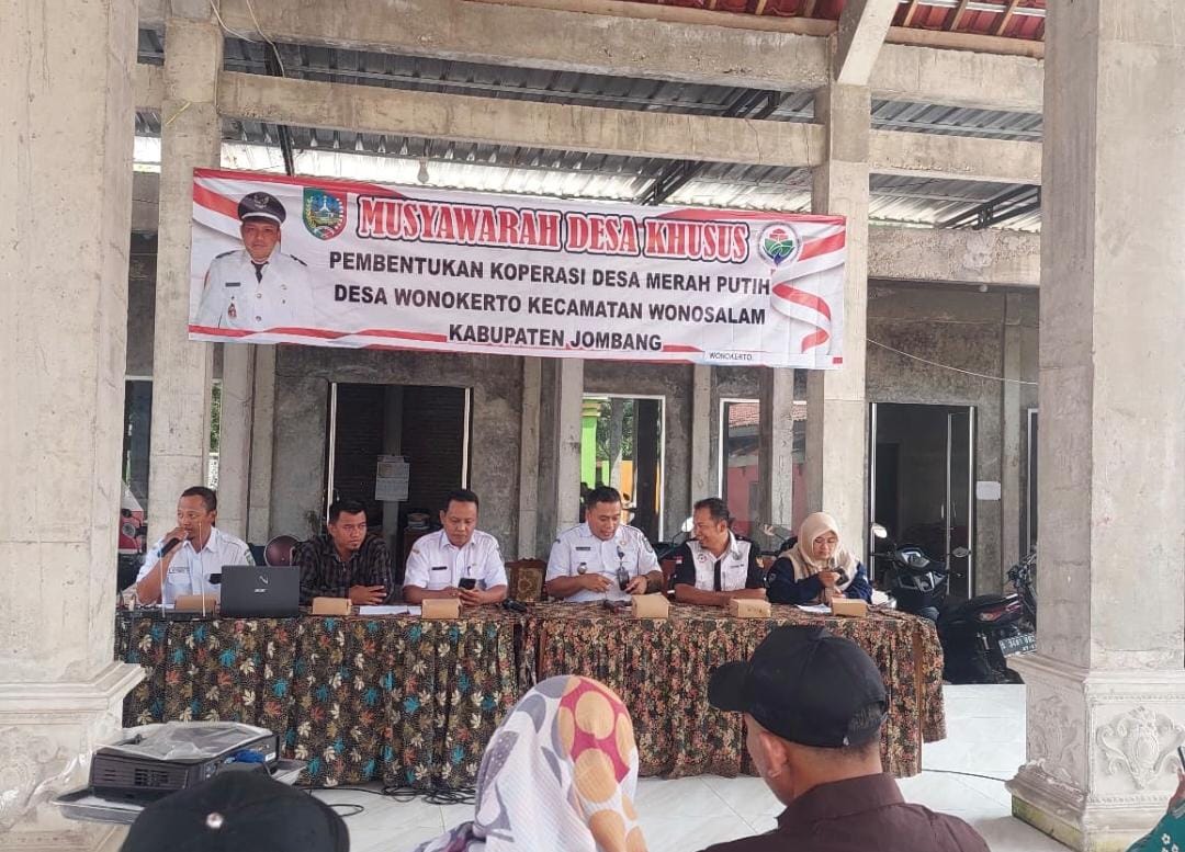 Rabu, 8 Mei 2025, Musdes Khusus Pembentukan KOPDES Merah Putih Ds. Wonokerto Kec. Wonosalam yang dihadiri langsung Oleh Camat Wonosalam Bpk. Haris Aminuddin, S.STP,. M.E . dimana diharapkan dengan terbentuknya Kopdes merah putih di Ds. Wonokerto ini bisa meningkatkan Perekonomian masyarakat jarak dan Masyarakat Ds. Carangwulung Bisa lebih sejahtera lagi kehidupannya, dimana dibentuknya Koperasi Merah Putih merupakan mandat langsung dari Presiden RI Bpk. Prabowo Subiyanto agar semua Desa di Indonesia Mandiri mengelola Perekonomian.