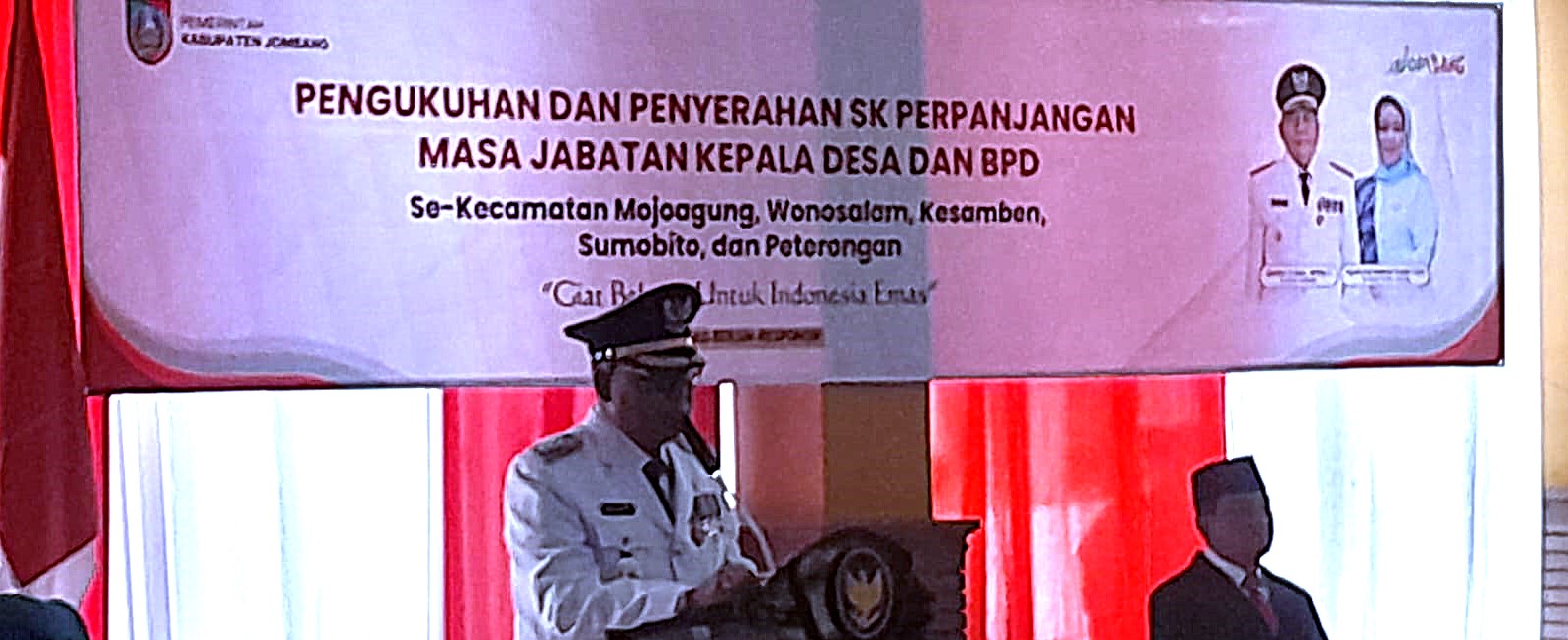 Penjabat (Pj) Bupati Jombang, Sugiat S.Sos. M.Pst.T., melaksanakan pelantikan dan pengukuhan Kepala Desa (Kades) serta Badan Permusyawaratan Desa (BPD) dari Kecamatan Mojoagung, Wonosalam, Kesamben, Sumobito, dan Peterongan. Acara ini berlangsung khidmat di Kecamatan Mojoagung, dihadiri oleh berbagai pejabat dan unsur pemerintahan daerah.
