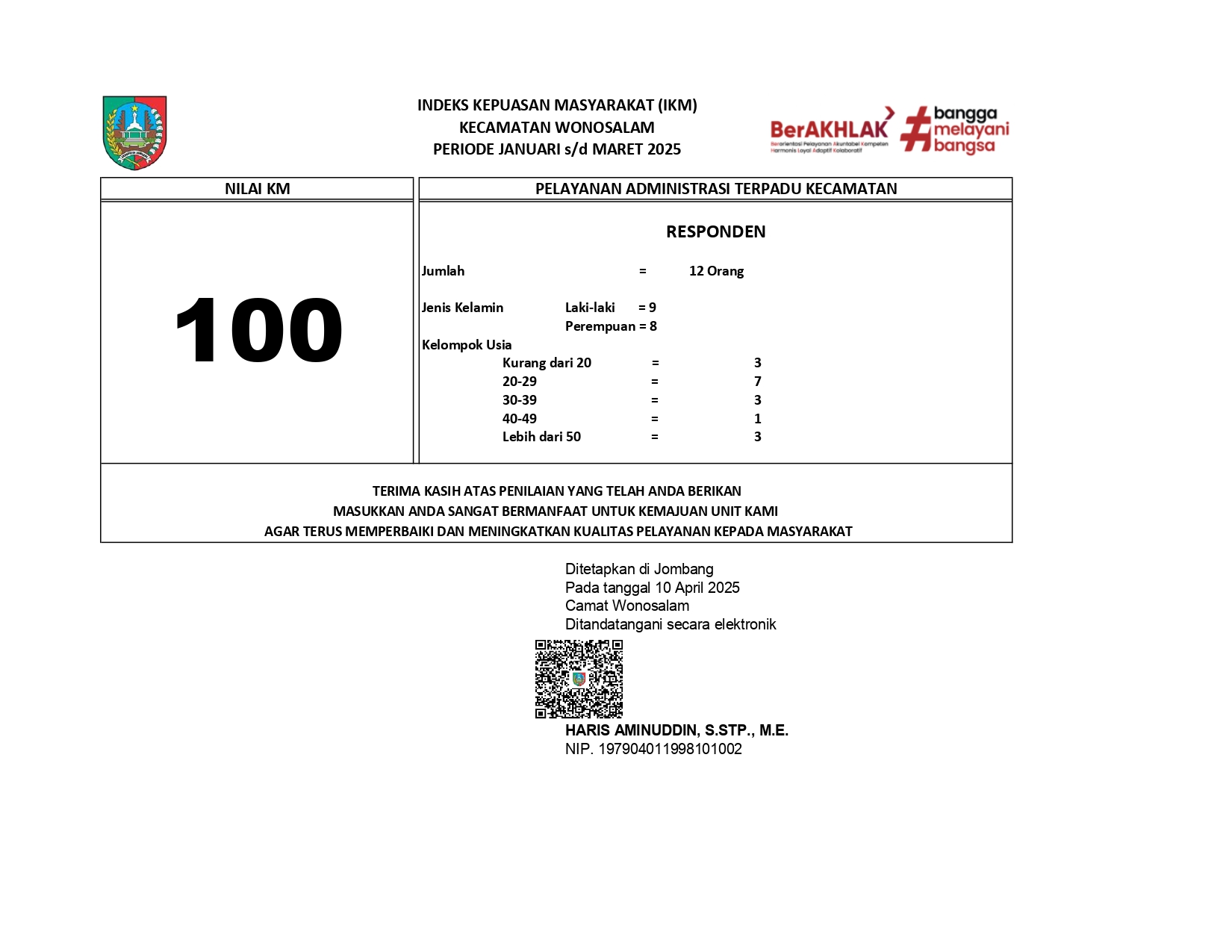INDEKS KEPUASAN MASYARAKAT (IKM) PERIODE JANUARI s/d MARET 2025